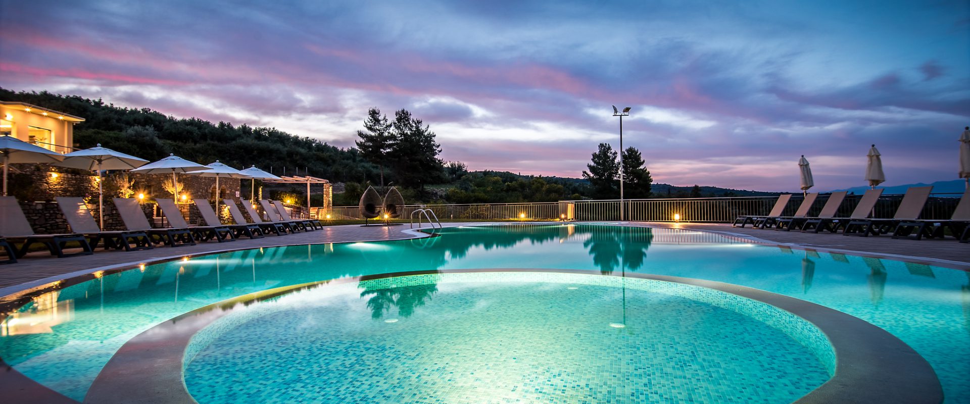 В бассейне нашего отеля, который произведет впечатление на каждого нашего гостя, общей площадью 240 м2 и максимальной глубиной 3,20 м, у вас будет возможность насладиться плаванием, минутами полного расслабления во время гидромассажа, а также выпить чашечку ароматного кофе или прохладительного коктейля, перекусить на удобных, располагающих к отдыху шезлонгах, которые расположены по периметру бассейна.